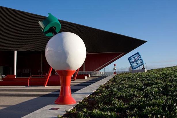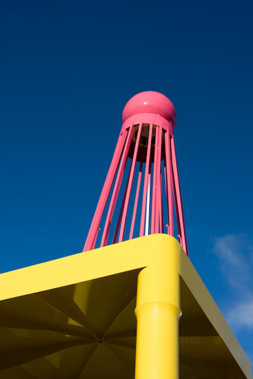 act as dynamic visual anchors against the backdrop of the site’s angular