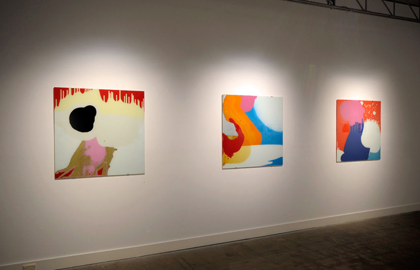 Mood Bomb was an exhibition of abstract oil paintings on (the back of)