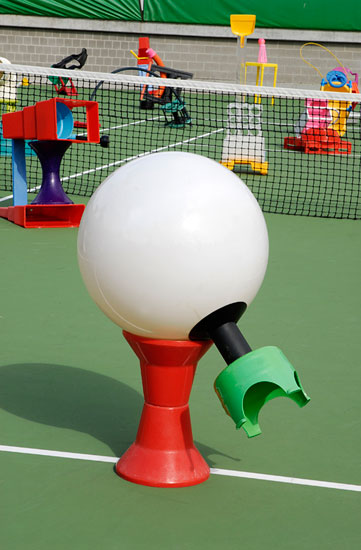 Some of the works hinted at the theme of tennis. A bulbous red and black