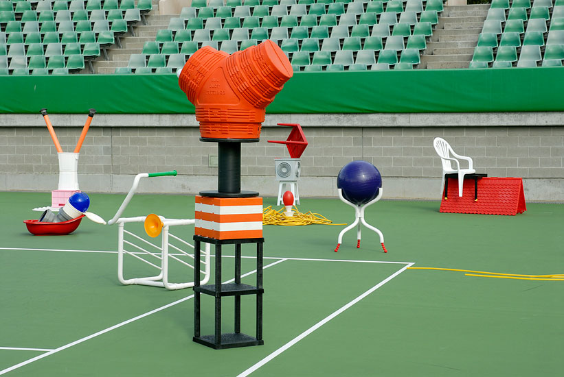 As a result of the similarity I perceived between Kippenberger’s work and Paramor’s, I approached the artist and suggested a sporting stadium as an exhibition venue for the sculptures. Only once the search for a venue was underway did I discover that Kippenberger had in fact fabricated the look of an indoor soccer field within a museum; The Happy Ending of Franz Kafka’s Amerika, complete with astroturf backdrop was re-staged at the Tate Modern in 2006.